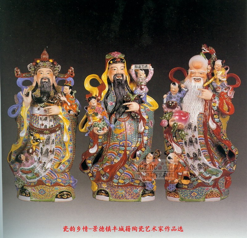 景德镇丰城籍艺术家 《福禄寿》三星瓷雕 作者:余国华