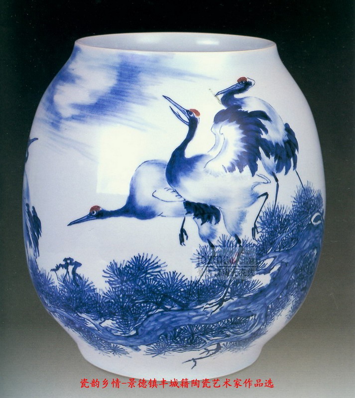 景德镇丰城籍艺术家 《松鹤长青》瓶 作者:王华