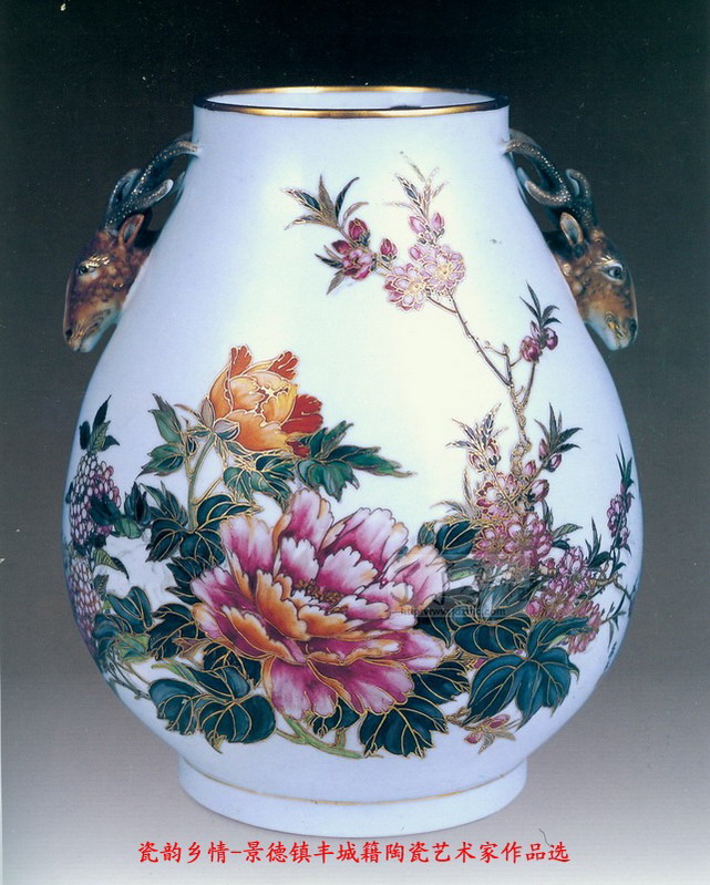 景德镇丰城籍艺术家 《绣球牡丹鹿耳斜桶》瓶 作者:徐成 已故
