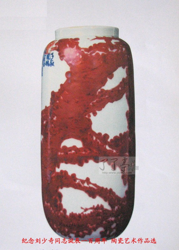 纪念刘少奇同志诞辰一百周年 红松(瓷瓶)作者:余少石