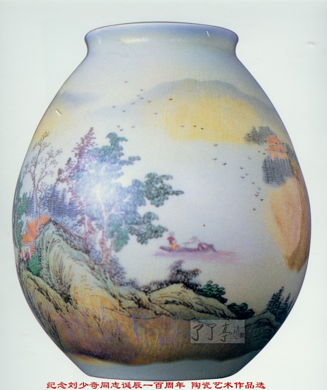 纪念刘少奇同志诞辰一百周年 一叶轻舟(瓷瓶)作者:李少景