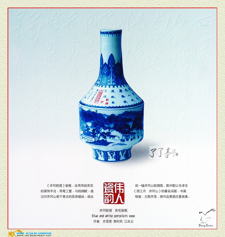 纪念毛泽东百年诞辰 《井冈胜境》 青花瓷瓶 作者:齐茂荣 李时民 江兆云