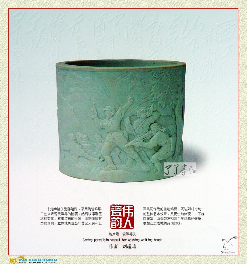 纪念毛泽东百年诞辰 《炮声隆》 瓷雕笔洗 作者:刘超鸿