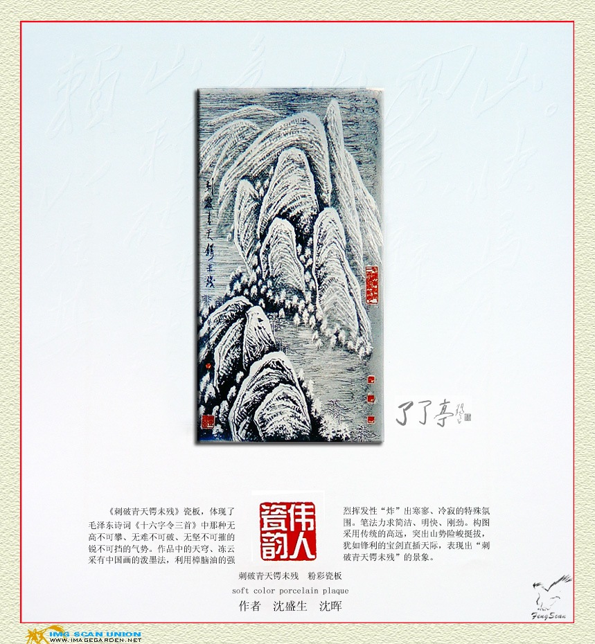 纪念毛泽东百年诞辰 《刺破青天锷未残》粉彩瓷板 作者:沈盛生 沈晖