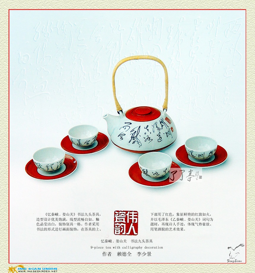 纪念毛泽东百年诞辰 《亿秦娥·娄山关》书法九头茶具 作者:赖德全 李少景