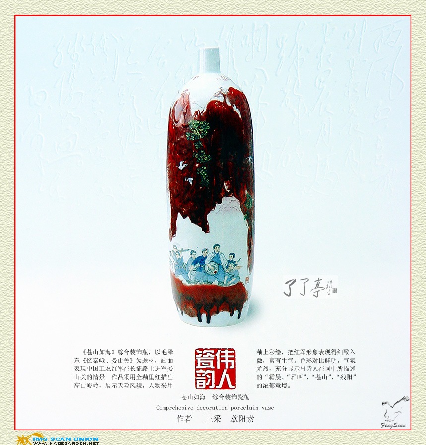 纪念毛泽东百年诞辰 《苍山如海》综合装饰瓷瓶 作者:王采 欧阳素