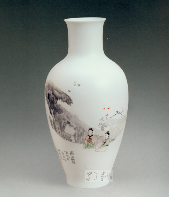 作品是表现春天的诗意图,在洁白瓷胎上,构图用笔力求少而精,尽量不妨碍瓷的材质美。