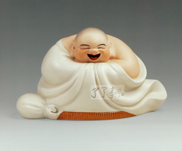 罗汉是传统的佛教题材,一般被描写为大腹便便,笑口常拜的模样-据说他能知人间祸福,身披五子,象征福泽子