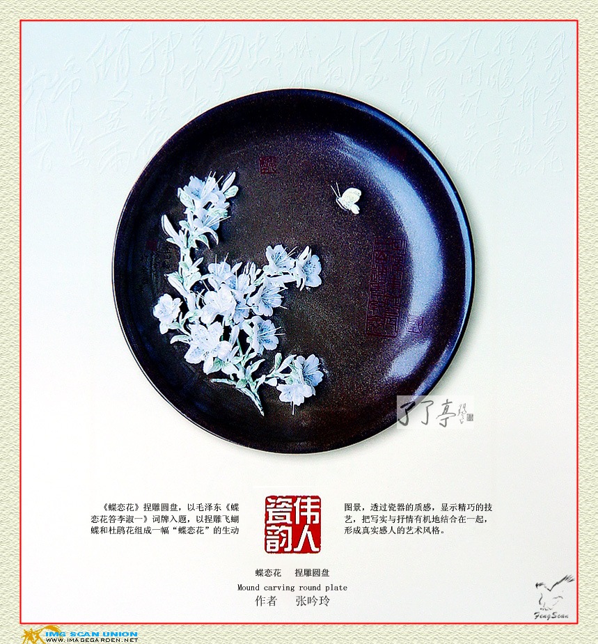 纪念毛泽东百年诞辰 蝶恋花 捏雕圆盘 作者:张吟吟