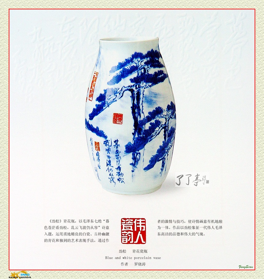 纪念毛泽东百年诞辰 劲松 青花瓷瓶 作者:罗晓涛