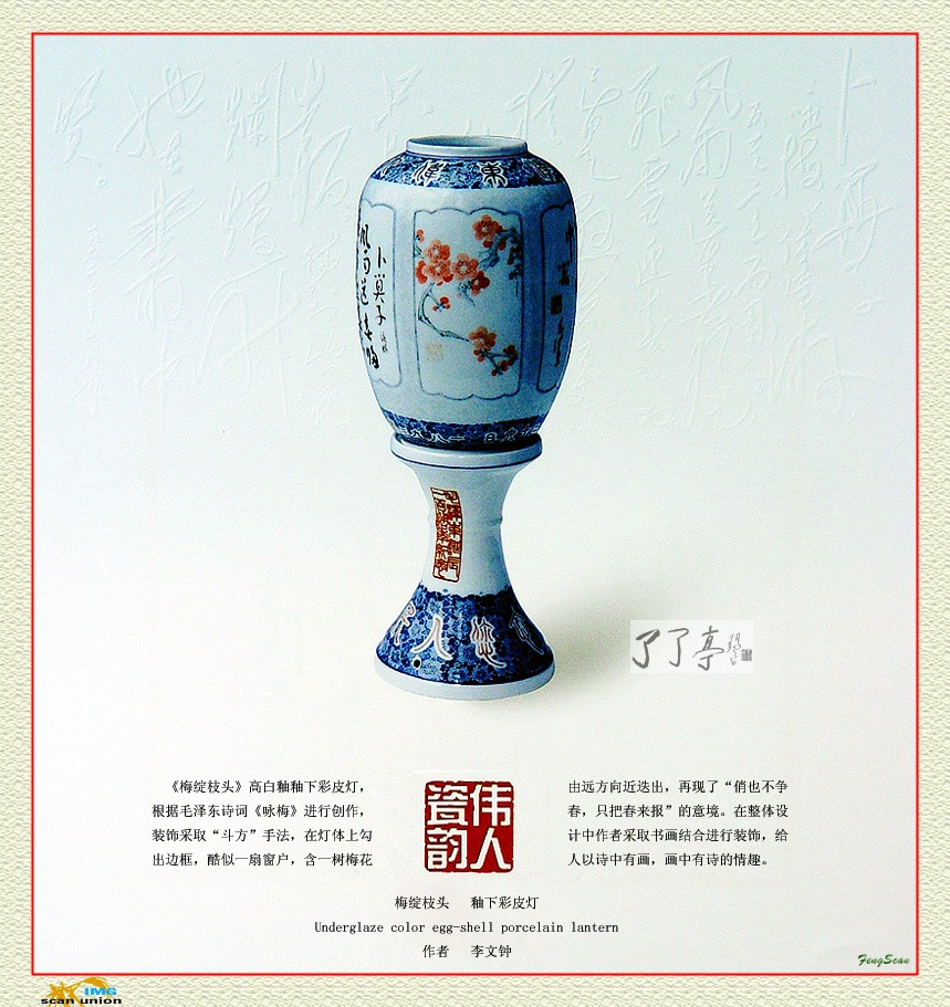 纪念毛泽东百年诞辰 梅绽枝头 釉下彩皮灯 作者:李文钟