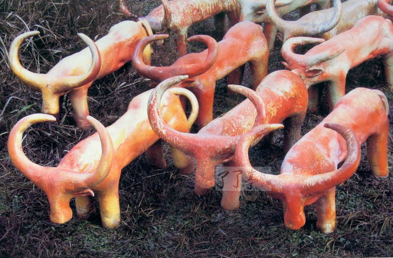 在农耕社会,牛是人类不可缺少的劳动伙伴,是人类最忠实的朋友,它敦厚而有力量,在行走中透出一股不屈不挠的韧劲:作品以还原气氛窑变烧咸,富有极丰富色彩变化,体现土与火的本色。