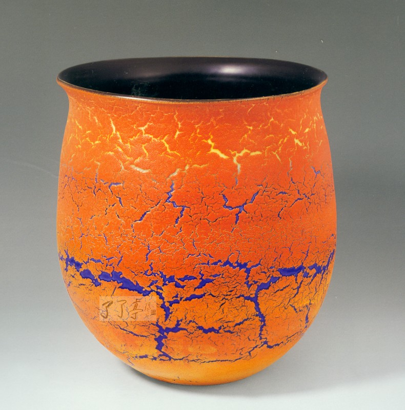 这是一件采用高温还原气氛烧咸的窑变作品,在工艺上采取多种创新手法,作品经过烧成后具有很大偶然性。