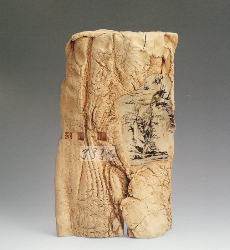 戴雨享 中国美术馆陶瓷艺术邀请展 作品:“瓷石之间”2004年高/26cm在相对一致的外形中寻找一些细节的不同,井以其整体性来显现一种审美和品格,是作者对“形式与过程”的人生方式和艺术方式的一种理解。如中国汉字,方正之间的笔画结构不同所代表的意义就千差万别。也如人的表情和面容,看似一致却全不一样,细微之处蕴涵着人生的丰富多彩。瓷的语言:温润、清雅,含蓄、高贵,从容和安静,天生文儒气息。而这些品质在作者看来又是那样地具有中国文化的特征。