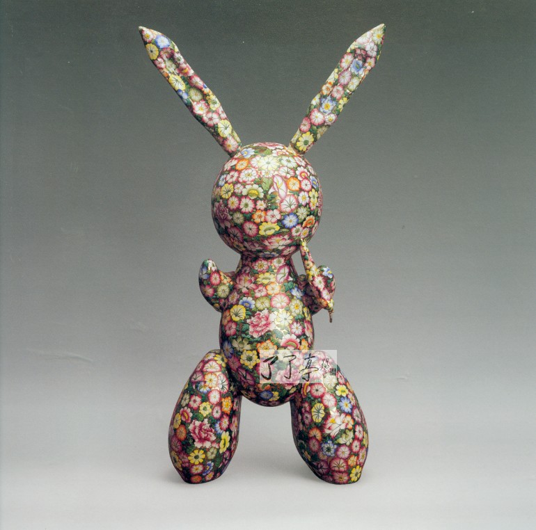 作品制作于景德镇,注浆成型,烧制后,釉上绘以金地百花,历时5个月完成。《兔子》的原型为美国艺术家杰夫·昆斯的一件代表作品。作者只参与了作品的策划,其余全部由机器完成,作者只是完成了材料的转化。作品形成是这样的:一、去百货商场买一只大的塑料充气兔。二,把塑料充气兔送到钢具厂浇灌成不锈钢的。三、把变成金属不锈钢的充气兔送到美术馆。其作品表现了消费者的行为和市场构筑了我们的社会,作者借用其作品的原型正是挪用了这种行为,再施以传统的陶瓷这种带有亲情关系的材料,加上人工手绘,其作品以墓碑的形式归根结底是在体现现行的主流——通俗文化,一种流行的、波普的、无限被复制的文化。作者用手工瓷器、金底百花这种流行的民间样式来体现中国民间传统的、即将消逝的通俗文化。杰夫.·昆斯的作品中常出现鲜花,他说:“花束是让人们欣然接受自己的过去。”——以朴抽之物体现美,这可能也是本作品的一个巧合吧。中国当代的陶艺作品大多有一种和国际接轨的趋势,不是用带有现代美感的陶艺材料来表现过去,而是用古老的陶瓷材料来表现当代的都市生活,作者借用了墓碑的经典形式来缅怀我们的过去。