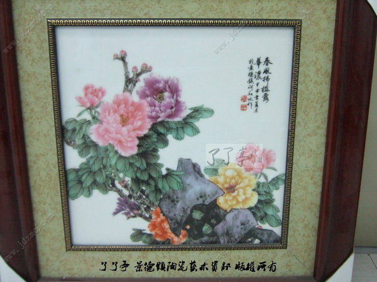 何叔水 釉上彩《春风拂栏露华浓》贴花瓷板