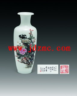 | 说明 | 方云峰 粉彩“耄耋图”瓶 创作年份 民国 高30厘米 题识:日伏花阴迷蝴蝶,夜卧山斋护旧书。佩霞方云峰作於珠山客次。 印识:云峰、惜花轩主 Fang Yunfeng A famille-rose ‘Cat and Butterfly’vase. Republic of China H.30cm RMB: 6,000-8,000 作者简介 方云峰(1897-1957),号佩霞,别号惜花轩主,江西浮梁人。早年在浙江龙泉瓷厂任绘瓷技师,后入杭州浙江中华美专中国画系学习。先后任教於江西省立陶业学校、浮梁陶瓷职业学校。擅长粉彩仕女,兼人物、山水、花鸟、走兽、虫草等,用笔纤丽,中晚年喜绘猫和牡丹。 |