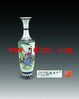 | 说明 | 赵惠民 粉彩“秋庭婴戏”薄胎瓶 高36厘米 题识:秋庭婴戏。古越赵惠民作於景德镇艺术瓷厂美研室。 印识:雅玩珍藏 作品赏析 兹薄胎瓶器形修长,清丽脱俗,韵致隽永。口沿、肩颈及足部俱以细笔蘸着黑彩施绘璎珞、蕉叶、变形如意等纹饰,端雅秀美,雍容庄静。腹身掷笔绘就粉彩“秋庭婴戏图”,画面布局殊妙,妇孺形神并蓄,刻画细致入微,言其衣饰、配景,皆毫髮不爽,笔触自然灵丽,不见拖沓塞滞,褶襞流转圆旋,尤臻乎流水行云之妙,真可谓厚积而薄发乎。赵惠民规抚前人粉本无数,然所作气韵殊致、己貌不失,惟能博观约取,知宗而用妙耳。 Zhao Huimin An egg-shell porcelain ‘Maiden’ vase H.36cm Appreciation: A mother holds her young child on her knee and one playing by her side. The mother is dressed in classical robes and sits on a typical cane chair. The children’s heads are fully shaven apart from a short tuft left at the front. This style is thought to represent a peach, a Chinese symbol of longevity. RMB: 70,000-90,000 |