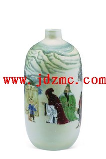 | 说明 | 孙燕明 色釉装饰“三顾茅庐”瓶 高48厘米 作品赏析 “三顾茅庐”典出自诸葛亮《出师表》:“先帝不以臣卑鄙,猥自枉屈,三顾臣於草庐之中。”是曰“刘备亲顾茅庐拜卧龙,三往,乃见”,故而民间苍黎引之以喻诚心诚意之贤人。兹“三顾茅庐”瓶,画面布置得宜,全藉有疏有密,枯木略施,丘壑稍写,意境清虚不嫌空松。隆中朔风凛凛,瑞雪霏霏,山如玉簇,树似银装,灵气潺潺,菁华满目,是谓意蕴超迈。个中人物描摹生动,形象稚拙亦臻高古,睹见关羽道貌岸然、手抚长髯,张飞五大三粗、手握宝剑,刘备谦逊弓腰、微指茅庐,甚觉形貌达意、栩栩欲话。虽未见诸葛孔明,然其安卧不惊、气定神闲之情态,历历拂然眼前,莫不令见者动高怀、兴远想。此乃性灵所寄之作,满目尽是文章,甚觉妙不可言。 Sun Yanming A colour-glazed ‘Romance of the Three Kingdoms’ vase H.48cm Appreciation: Lots of different colour glazes are used here to recreate the gaudy cloaks and costumes of the Three Kingdoms period. The artist uses the white underglaze to good effect to produce this wintry scene. RMB: 50,000-70,000 作者简介 孙燕明(B.1962),生於景德镇,江西樟树人。毕业於景德镇陶瓷职工大学陶瓷美术专业,现为江西省工艺美术大师、中国美术家协会会员、中国陶瓷工业协会会员、景德镇陶瓷协会会员。擅长人物画、综合装饰、雕刻、吹釉等。 |