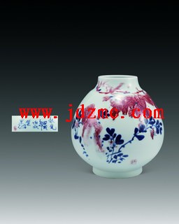 | 说明 | 舒慧娟 青花釉里红“秋光”瓶 创作年份 1994 高27厘米 款识:轻工业部陶瓷研究所一九九三 作品赏析 兹瓶形製敦稳而实,满腹珠玑,朗朗可观。青花者发色浓艳,似渗透釉里,深杳不可捉摸,骨肉停匀,浓淡渗化,甚得“五色墨韵”之遗意。反之,釉里红者枯索萧淡、斑驳苍茫,大开大阖,万象迭出,干湿浓淡,浑然天成,尤臻乎气韵高妙之佳境。整器笔势颖脱,墨情殊绝,高妙入神,机趣盎然,真古今难觅之物矣。 Shu Huijuan A copper-red and underglaze-blue ‘Flowers’ vase 1994 H.27cm Appreciation: The warm blue and red glazes on the vase work well with the subject matter and the loose blurred style. The rising blue leaves and the hanging red bunches naturally complement each other and provide structure to the pattern. RMB: 60,000-80,000 作者简介 舒惠娟(B.1945),江西南昌人。现任职於中国轻工业陶瓷研究所,系中国工艺美术学会高级会员、景德镇市女陶艺家协会常务副理事长。1996年获“工艺美术大师”荣誉称号,2003年获首届“中国陶瓷艺术大师”荣誉称号。 |