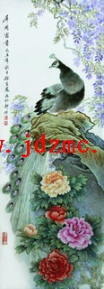 | 说明 | 徐亚凤 粉彩“屏开富贵”瓷板 创作年份 1985 80×32 厘米 作品赏析 黼黻俏羽领芬芳,牡丹虽艳亦称臣,不媚俗世开屏来,只待盛象展华衣。兹粉彩“屏开富贵”瓷板,设色明丽雅艳,布局务求生动,下以牡丹点景,上辅以藤花为饰,乃寓意“富贵呈祥”、“紫气东来”,亦予人生意盎然、欣欣向荣之美感。中景处置设苍骨灵石,傲然突兀,奇肆诡谲,令画面愈显丰润饱满。观其运笔,兼工带写,诸法并施,或而淡彩渲染,或而细笔勾描,然皆达画意之旨趣。孔雀翎毛俱以中锋点笔,兼及渲染打底,茸绵软和,尤似柔絮,见其踞石而憩,远胜於盼睐弄姿之俗态,尾支自然下垂,宛若娉婷长裙拖曳在地,斑纹色彩鲜目,足可与百花竞相斗艳。徐亚凤崇向自然美感,其所作花鸟瓷画,着力於人格化体现,尤重形神兼备,从而达到恬和静美之文人审美情趣。 Xu Yafeng A famille-rose ‘Peacock’ porcelain board 1985 80×32 cm Appreciation: The peacock sits high up on a rock, with his brilliant tail cascades down behind him like a waterfall. A variety of different coloured peonies decorate the foreground. RMB: 300,000-400,000 作者简介 徐亚凤(B.1940),江西南昌人,祖父为徐仲南,徐天梅之女。师从刘雨岑,专攻粉彩花鸟。1979年获景德镇“陶瓷美术设计师”称号,1993年获江西省首批“工艺美术大师”称号。系景德镇市女陶艺家名誉会长、景德镇陶瓷研究院副院长兼艺术顾问、广东中华陶瓷科学文化研究所顾问、中国工艺美术大师。 |