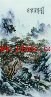 粉彩“松林访友”瓷板
