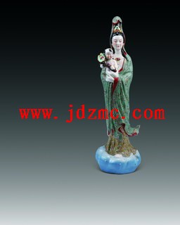 | 说明 | 曾山东 重工粉彩“送子观音”瓷雕 高67厘米 作品赏析 此尊“送子观音”像,开脸饱满,法相端严,纤秾合观,修短得衷,螺髮高髻,头顶宝冠,慈眉正中见朱痣,双目微阖,作下视状。其颈佩缨络,腕贯环镯,身披绮绣天衣,内着曳地长裙,文饰纷繁璀错,蔚为大观。粼粼珠片,熠熠耀目,黼黻华楚,不可殚言。褶襞圆顺自然,衣襬随风披拂,姿态安详闲适,尤臻禅意真味。观音怀抱童子端立於座上,体态丰腴曼妙,面露慈悲之相。整器卓尔不群,堪比鬼斧神工,造型精准匀称,运刀深入浅出,是为曲尽其妙。天道酬勤,此非虚言。兹旷世佳作,不可成事於须臾? 乃数十年磨一剑,方可水到渠成。 Zeng Shandong A famille-rose statue of ‘Guanyin’ H.67cm Appreciation: This figurine is remarkable for its detailed drapery and austere expressions. The babe in her arms holds a ruyi, a classic Chinese object RMB: 300,000-400,000 作者简介 曾山东(1926-2000),江西丰城人,师从父曾龙升。1961年获景德镇“陶瓷美术家”称号,系高级工艺美术师、中国美术家协会江西分会会员、中国盲人聋哑人协会会员、江西省盲人聋哑人协会副主席、景德镇残疾人福利基金会理事。擅长人物雕塑,作品多次参展获奖。其大型瓷雕“天女散花”现今陈列於人民大会堂。? |