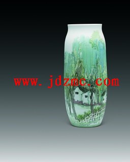 | 说明 | 赖德全 珍珠彩“乡村叠翠”瓶 腹径25厘米 高58厘米 附获奖证书 作品赏析 赖德全的“釉上珍珠彩”,充分挖掘出了材质本身的审美潜能,利用彩料直接渗透至釉层的工艺原理,大大减弱了色彩与图案在烧造气氛中的波动,从而达到了“借料生情”的艺术效果。整件作品色泽明丽,画面布局饱满,青山秀茂,黑瓦白墙,江南水乡尽收眼底,诚可谓“笔墨有尽,意韵无穷”。? Lai Dequan A pearl-glazed ‘Landscape’ vase D.25cm H.58cm Appreciation: The landscape scene is applied directly on to the surface of the vase and thus its white glazed tapering neck and splayed lip become part of the composition also. The pearl-glaze creates a soft contemplative feel to the piece. RMB: 120,000-160,000 作者简介 赖德全(B.1955),江西赣州人,生於景德镇。现为景德镇市陶瓷研究所所长、高级工艺美术师、中国工艺美术大师、中国工艺美术学会高级会员,享受国务院特殊津贴。首创釉上珍珠彩,擅作色釉、粉彩、指画及民间青花装饰。 |