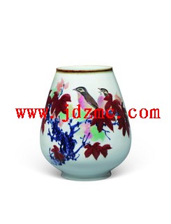 江联 青花釉里红斗彩“红叶小鸟”瓶 RMB 120,000-160,000