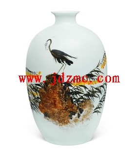 | 说明 | 何炳钦 新彩“仙鹤图”瓶 腹径22厘米 高43厘米 作品赏析 画法门类至多,而传神写照,由来最古。兹新彩“仙鹤图”瓶,乃脱臼於传统文人画,形虽迁变,然神气不减,尤得八大山人之真味。何炳钦施艺,勤学前人而又能自出精意,非平铺直叙、千篇一律,非殚巧失趣、骇俗坠实,笔韵生动,墨气明润,意致雅澹,尘俗尽去,故可雅以为美、臻入佳境。 He Bingqin A colour porcelain ‘Crane’ vase D.22cm H.43cm Appreciation: An unusual palette of yellows and browns come into play in this piece. The crane is rendered artfully but with simple brushstrokes and broad splashes of colour. RMB: 60,000-80,000 作者简介 何炳钦(B.1955),江西婺源人。毕业於景德镇陶瓷学院,现为景德镇陶瓷学院设计艺术学院院长、教授、硕士研究生导师、江西省高校学科带头人。系中国工艺美术学会理事、江西工艺美术学会常务理事、景德镇高岭陶艺学会副会长,享受国务院颁发“政府特殊津贴”的专家。 |