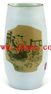 | 说明 | 吕金泉 白地黄釉开光“婴戏”瓶 高33厘米 Lv Jinquan A white-ground yellow glazed ‘Children at Play’ vase H.33cm Appreciation: The artist here has chosen to his place his Children at Play scene within a modern striated brown frame on the white glaze vase. A charming scene is depicted of a boy at play. RMB: 60,000-80,000 作者简介 吕金泉(B.1964),生於江西上饶市。1987年考取景德镇陶瓷学院美术系硕士研究生,1990年毕业并获硕士学位。现为景德镇陶瓷学院设计学院书记、硕士生导师、江西省美协会员、景德镇高岭陶艺协会会员、景德镇陶艺设计家协会秘书长、东南大学博士。 |