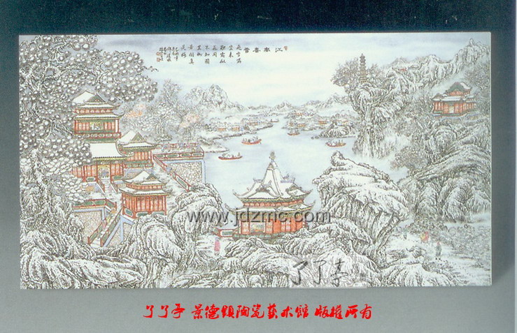 江南春雪·粉彩瓷板 我家门前有条河·青花瓷板