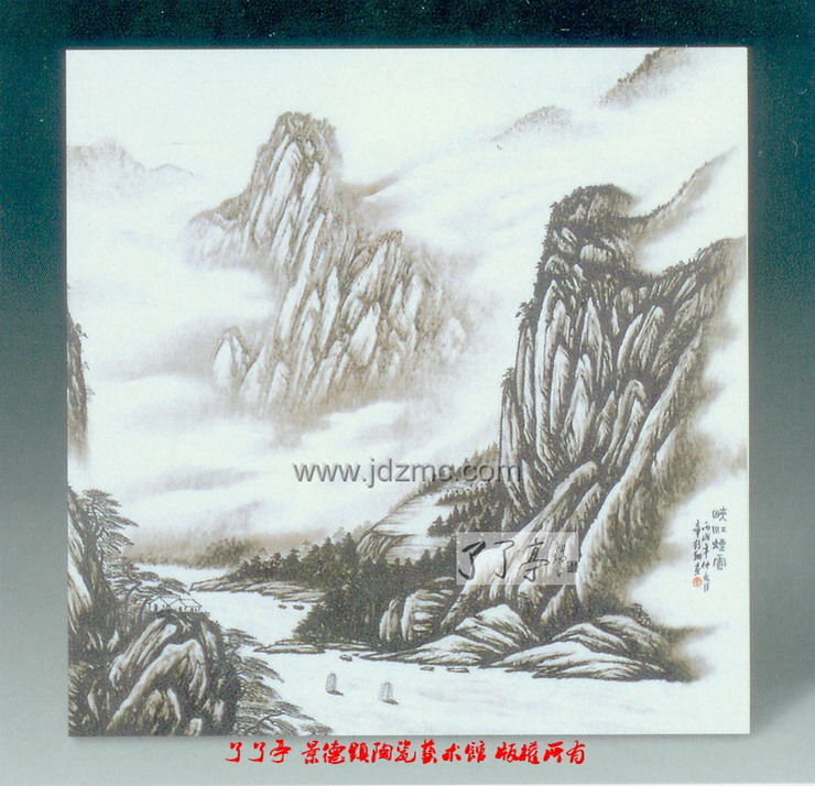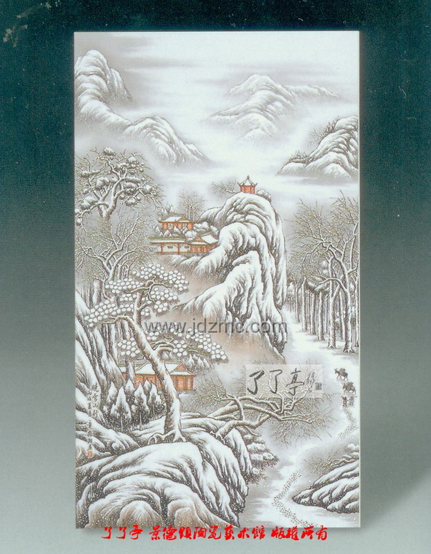 峡珏烟云·新彩瓷板晓雪山行·粉彩瓷板
