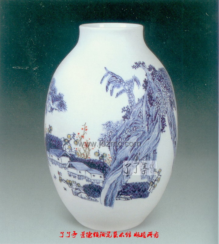 紫气东宋·新彩瓷瓶客至图·青花瓷瓶