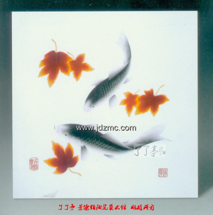 连年有余·新彩瓷板锦鲤图,新彩瓷板