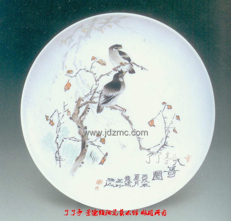 八哥图,新彩瓷盘红悔图,粉彩瓷瓶