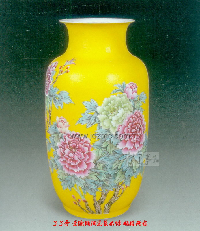 黄地牡丹·粉彩瓷瓶全家福·新彩瓷瓶