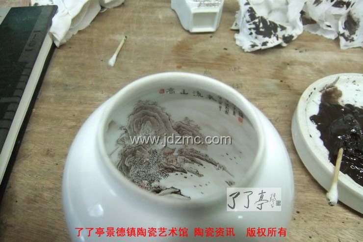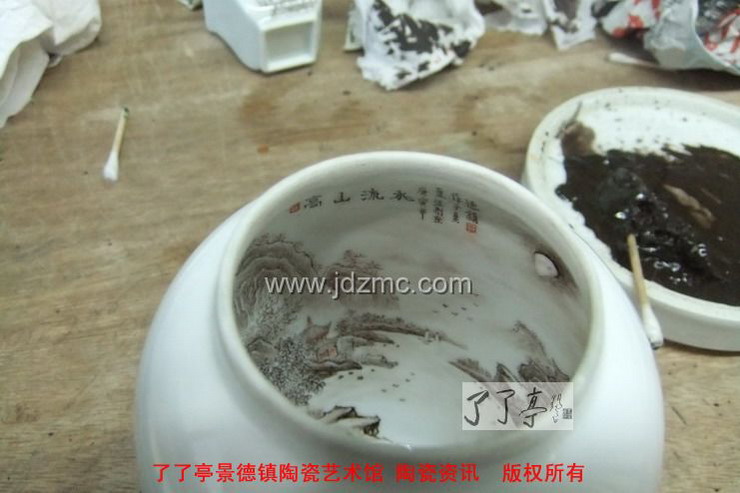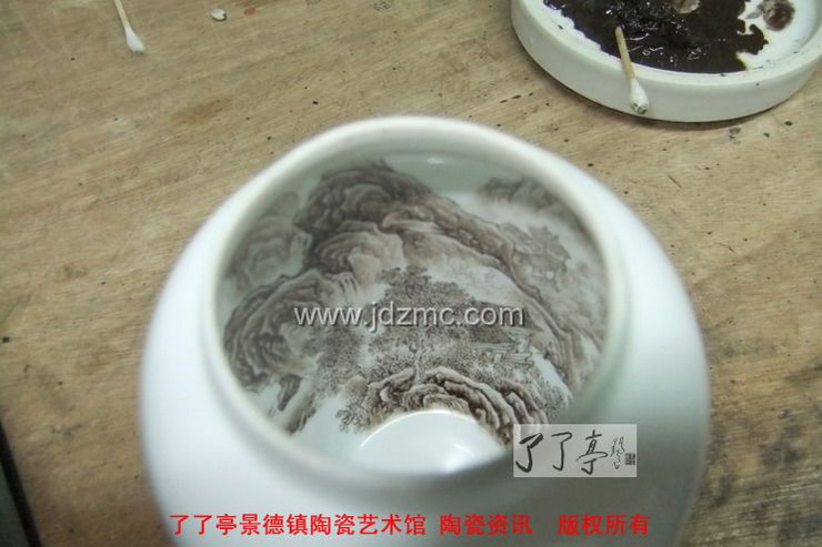 汪则东告诉记者,在从事陶瓷行业的10余年里,他不断在探求着陶瓷绘画新技法。在瓷器花瓶内画这门,目前独一无二的绘画中,汪则东也是在一次绘画中发现的。