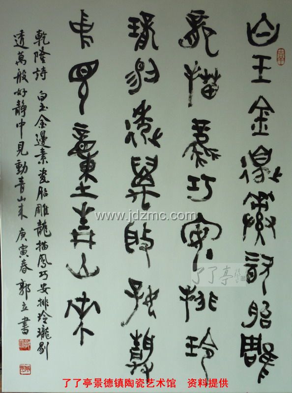 郭立,1960年1月生。景德镇陶瓷学院教授、书法老师,景德镇市政府首批授予“民间文化艺术家”称号。中央美院“书法研究”访问学者。景德镇市书法家协会主席。中国工艺美术家协会理事,江西省书法家协会会员,江西省美术家协会会员,景德镇市美术家协会常务理事,景德镇国美陶瓷馆馆长,景德镇市瓷画轩陶艺家。