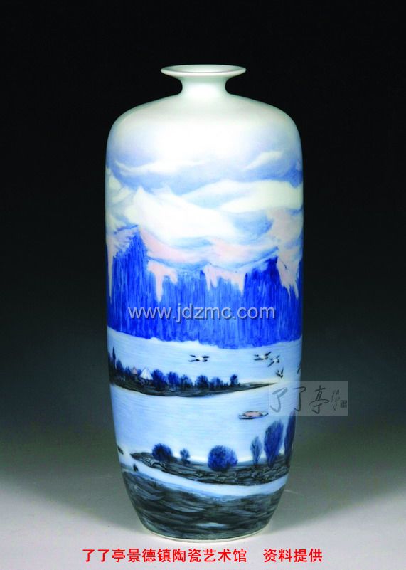 艺术源于生活高于生活,青花作品充分体现出出扎实的写生绘画功底和深厚的文化内涵。天人一物,内外一理 的文化精神,再现对山水图腾的崇拜。而正是由于独特的艺术风格,使之成为景德镇陶瓷行业的拔尖人才。