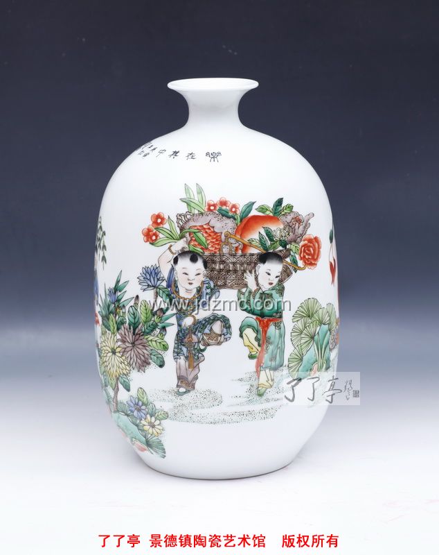 传统后面常常尾随着古板,就像大俗与大雅之间仅有一层纸的隔膜,多数人都很难做到把握好这个度。景德镇高等专科学校的程幸副教授从传统古彩画中脱颖而出,以清新中夹带着灵气,流畅里透露着严整的风格跻身于陶瓷画坛,在当今才哲荟萃的景德镇确是殊属不易的事。