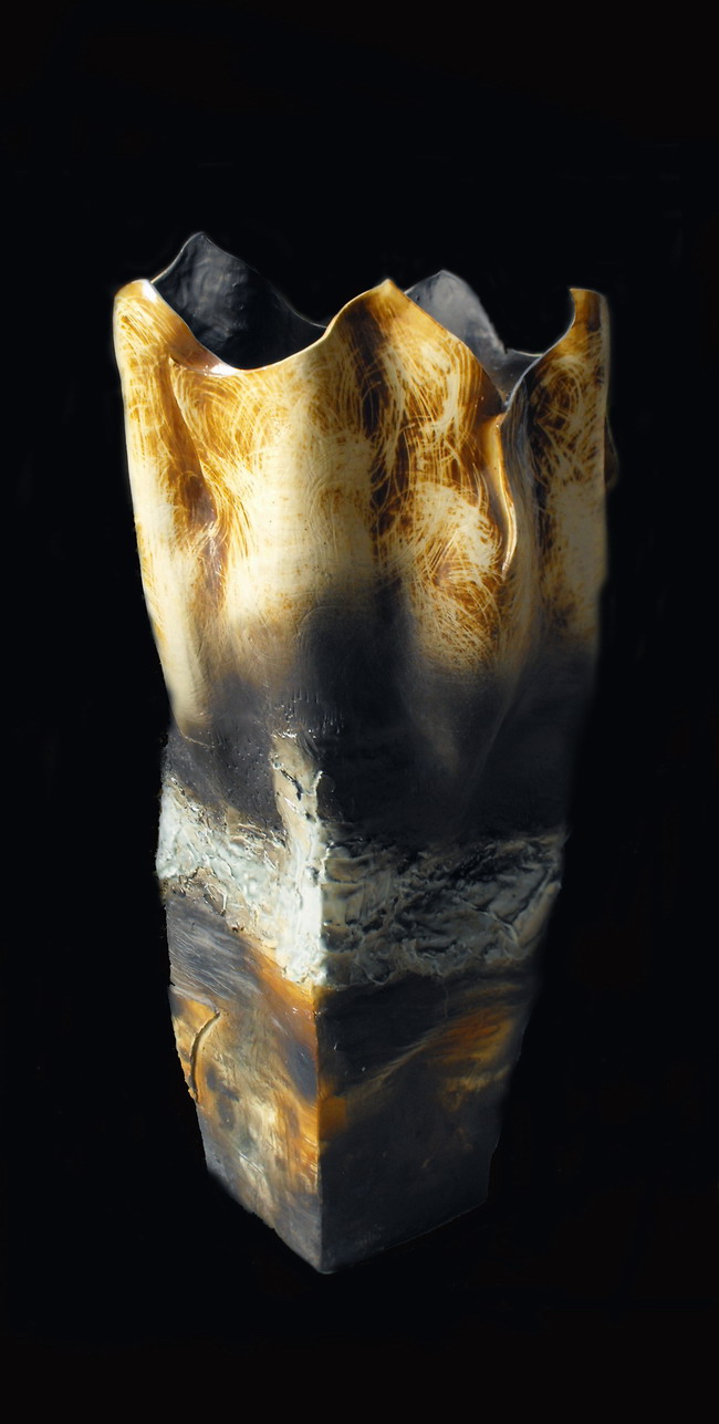 陶艺是纯化后的艺术语言,文化思考是陶艺创作的内在动力。陶艺家的感觉指向了当代文化的宽泛空间,陶艺家应该在当代文化中扮演参与者和表述者的角色,思考涉及到当代生活现实与精神现实的诸多方面,把陶艺的主题与当代文化的许多共同课题联系起来。是对历史与传统的重新诠释,对当代人生存状态的正面展开,对东西方文化的深度思维,蕴意作品的深层内涵,是文化创新的劳作者,殊不愿作为“画瓷”的谋生者,而是意欲做到面对和应答人生与社会的艺术家。动力之源于受到了时代思潮的鼓动、推涌。摒弃成法成规。有意走向陶艺的界限边缘的勇气,在不断的实验中得到成果。同时又构成和强化了这个时代的思潮氛围。这就使我们能够从一件陶艺的作品中感知到的激动。陶艺家应常到生活、到自然和劳动的人群中汲取养份,获得艺术创造的灵感,将自己的情愫,倾情地寄托其中,靠泥与火将升华了的生活展示为艺术。陶艺作品最终要靠它所承载的生命格局来支撑。作品的气格,不是空穴来风,它是能够穿透世态表象,直逼人心的力量感,不矫饰,袒露而率直。我喜欢具有穿透时空,也穿透表象,充满生命张力的陶艺。陶艺在这个意义上与生命的气象直接相连,并且表现生命与自然的大美与大气。(张苏波)