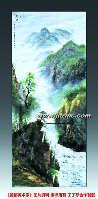综观景德镇油彩陶瓷艺术馆中陈列的、运用该技法创作的陶瓷作品,虽笔墨不多,却清晰地勾勒出山水、灵物之轮廓,彰显出大自然的鬼斧神工和曼妙神奇,既散发着高雅艺术的灵气,又闪耀着民间艺术的光芒;既有国画艺术的深远意境,又有油画的质感、立体感,同时兼具陶瓷艺术品的晶莹剔透,令人耳目一新,叹为观止。