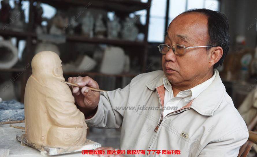 瓷坛圣手朱菊芳,江西省高级技师,国家级李贵镇技能大师工作室主要成员,1942年出生于景德镇的陶瓷世家。祖父有一手精湛的陶瓷雕塑手艺,多次为当时的朝廷贡献作品。父亲朱春发是雕塑瓷厂著名的老艺人,曾为轻工部创作设计了一大批建国瓷、出国瓷赴德国、捷克、波兰等欧洲各国展出,多次受到嘉奖。朱菊芳擅长陶瓷雕塑,如三星、十八罗汉、观音、寿公寿婆、弥勒佛、刘海、五福捧寿等,他表现手法丰富,塑、刻、捏、镂等形式多样,能取传统技艺之功,融现代画理之妙,择人物创作为主,传飞禽走兽之神,曾有业界人士评价他的作品,与著名雕塑大师曾山东先生之作有异曲同工之处。