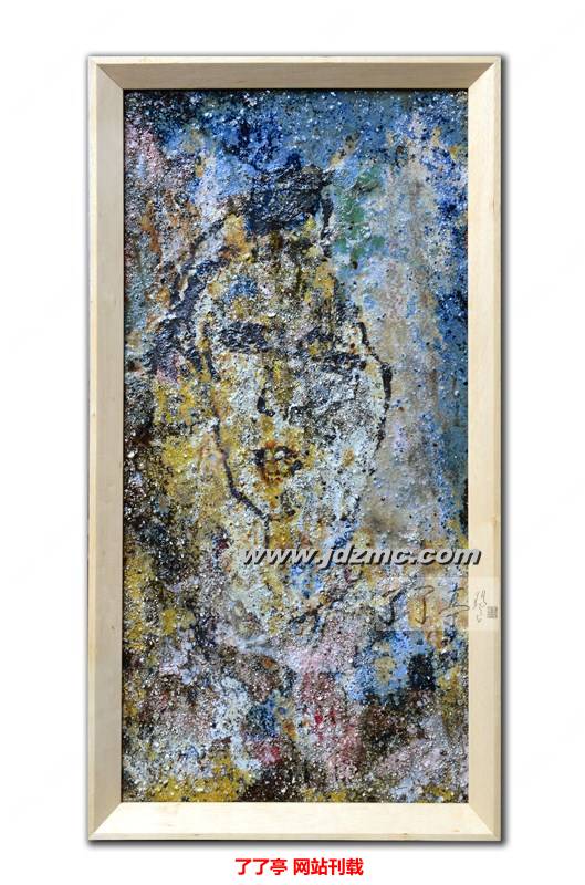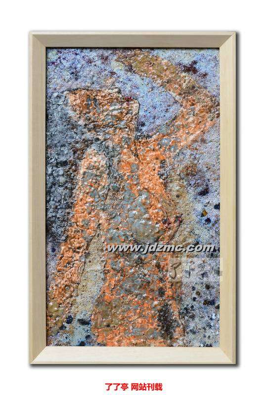 又一次我去马来西亚学术交流的时间里我看到了许多的油画,和各种画派的,即各种画种真迹。给我带来了很强烈的启发,他的那种表现,使我陶瓷创作得到了一个提升。回到景开始了我的研究,运用了沙子,木屑,枯草和泥浆,各种高温色釉,进行了混合式的材料制作烧成。一次次的烧成,既有惊喜,又有悲。之后我细心的将沙子洒在泥胚板子上,然后将色釉洒在沙子上。使沙子凝固,再用毛笔勾略出画面的造型,色釉和泥浆当成绘画颜料画。画面有了沙子的粗矿,色泽的斑斓,展现出了历史和古韵,既丰富了画面的历史背景也再次给陶瓷工艺创下新的技法和创新,高温色釉是从古至今都是不可多得的作品,有了高温色釉那种丰富的色彩,色泽高雅,韵味不凡的自然变化,高贵而璀璨精美的作品有了神秘的面纱,更加有了遐想,和每个人心灵相通的对话。画面上自然沧桑的裂纹是采用了高岭土的泥浆,即是矿物质颜料,也是景德镇现在所缺的陶瓷主要的原料核心。用这些自然的原料矿物质原料进行返璞归真的陶瓷艺术创作。艺术源于生活,生活是自然,自然既是艺术也是美。