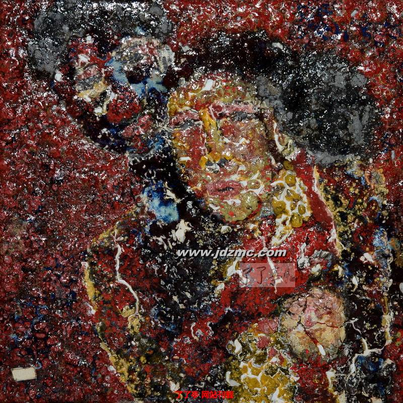我的画体现出人物的喜怒哀乐。中国《国粹》脸谱,就是用色来体现形形色色面目表情。色彩斑斓的作品有历史,有沧桑,有狂野,有感情,有创新,而且还超前。和那种光色釉的陶瓷作品对比有了立体,有工艺,有变化,有对比,有真情流露的故事,有对话,仅仅靠简单的人物造型和色彩的传达的出一个个动人的故事和一朝朝的民族文化历史那是笑话。而是要有无限的给他人传递和述说想象与对话。述说他们的喜怒哀乐,述说他们的爱情和社会的种种。我的画有了西画的色彩,也有了民族色彩,还有中国画的神韵。陶瓷工艺和民族文化展现的凌厉禁止。藏家和朋友们对我说,和我说掏心窝的话,观我的作品就是梦幻般的感觉。隐隐约约有人告诉他什么,作品体现的很丰富,有历史沧桑,有感情,有故事,还有遐想。沙画色釉是有沧桑和遐想,不拘于形和色的约束,大胆的色彩明确的给视觉冲击力一亮。在画面里能找到各种画风的影子,但又不是油画,也不是版画,是陶瓷沙子.色釉.泥浆,简称沙画。这是我呕心沥血的研究,可以说是给艺术和陶瓷艺术一个大的提升,在当代艺术没有创新,就是没有灵魂,没有灵魂的艺术,那就是行尸走肉。还是那就话吧艺术源于生活,生活的点点滴滴就是最好的艺术。