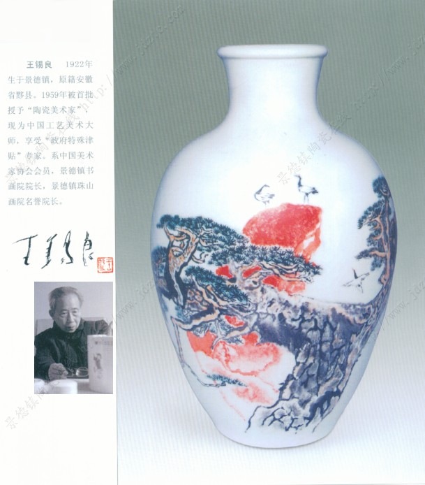 王锡良 1922年生于景德镇,原籍安徽省黟县。1959年被首批授予“陶瓷美术家”,现为中国工艺美术大师,享受“政府特殊津贴”专家。系中国美术家协会会员,景德镇书画院院长,景德镇珠山画院名誉院长。