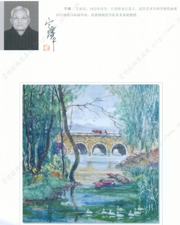 宁磷 字叔光,1922年出生,江西省余江县人。武昌艺术专科学校绘画系西洋画组1946届毕业,景德镇陶瓷学院美术系副教授