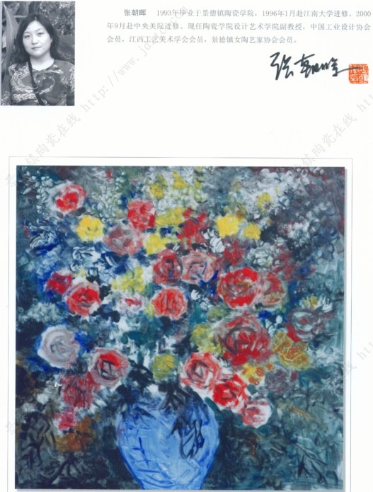 张朝晖 1993年毕业于景德镇陶瓷学院,1996年1月赴江南大学进修。2000年9月赴中央美院进修。现任陶瓷学院设计艺术学院副教授,中国工业设计协会会员,江西工艺美术学会会员,景德镇女陶艺家协会会员。
