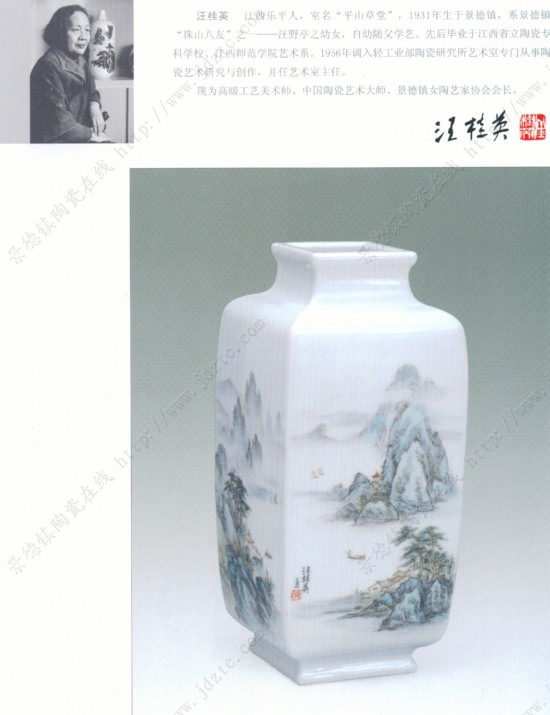汪桂英 江西乐干人,室名“平山草堂”,1931年生于景德镇,系景德镇“珠山八友”之一——汪野亭之幼女, 自幼随父学艺。先后毕业于江西省立陶瓷专科学校、江西师范学院艺术系。1956年调入轻工业部陶瓷研究所艺术室专门从事陶瓷艺术研究与创作,并任艺术室主任。